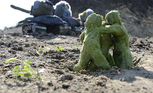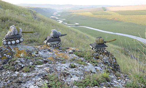 Trei caractere animate se deplasează de-a lungul râului Camenca (bazinul râului Prut).